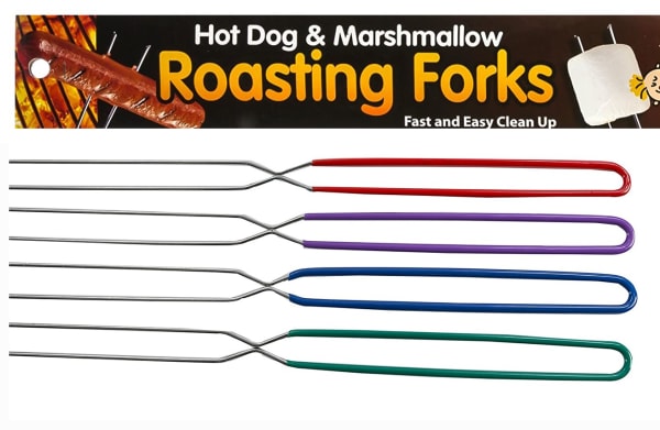 Roasting Folk. Great for Roasting Marshmallow, and Hot Dog. 33 long. Coated handled. Comes mix 4 colors. Red, Green, Blue and Purple.